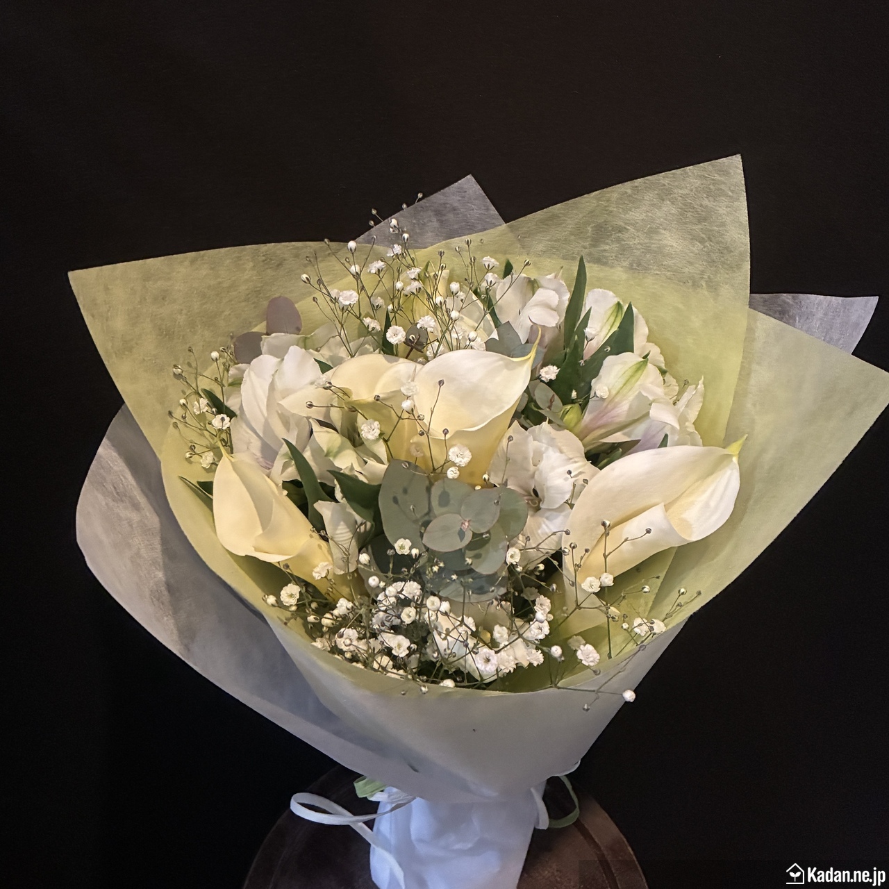 - カラー(二種) アルストロメリア ユーカリ カスミソウ 他 花器・ギフト用ラッピング